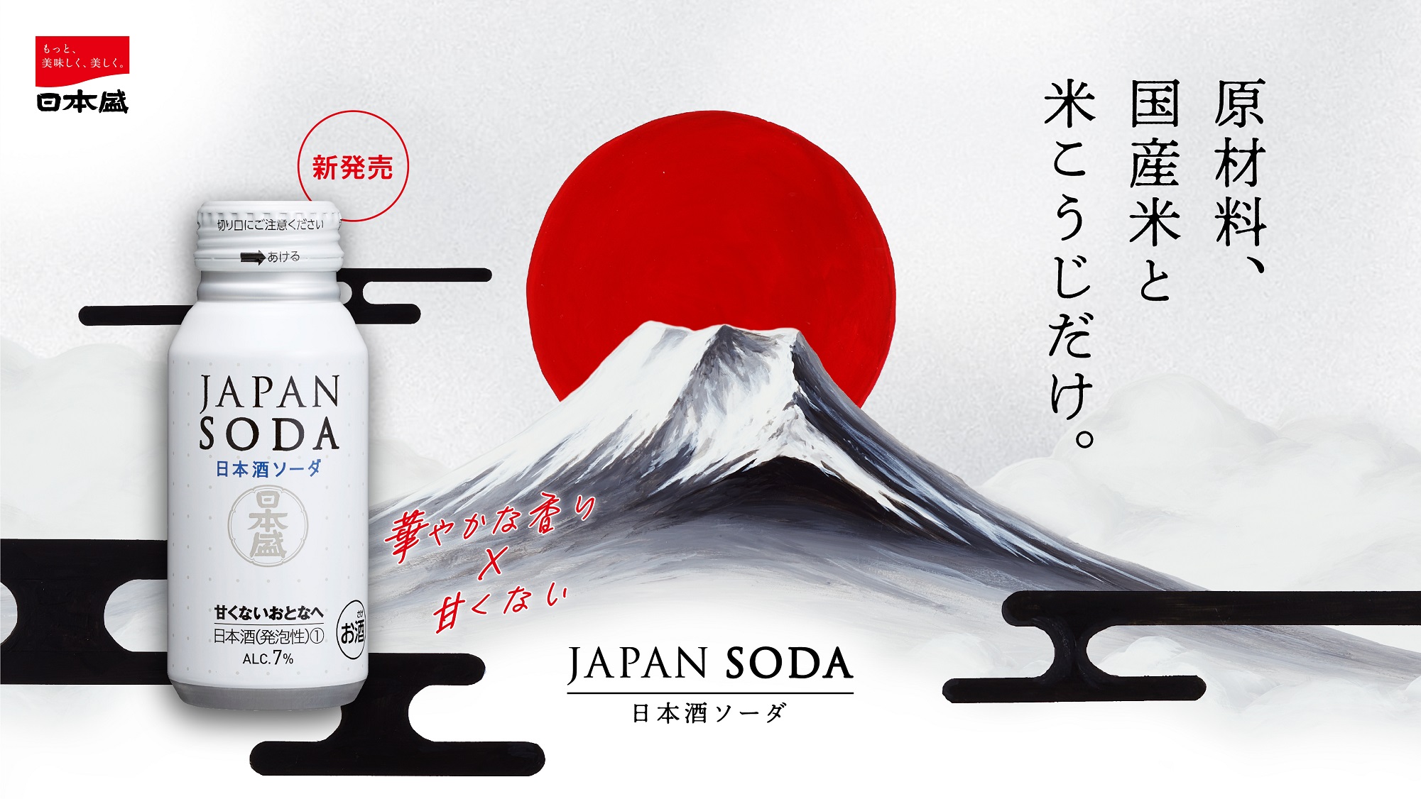 シックな水墨画風富士山に赤が映える、「日本盛 JAPAN SODA」オリジナルペンキ絵お披露目!