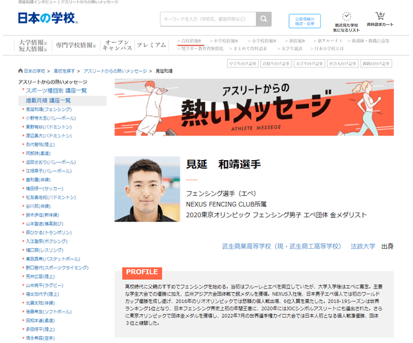 全国の大学・短大・専門学校などの学校情報を提供する、株式会社JSコーポレーション(本社:大阪市北区 代表取締役社長:米田英一)は、アスリートからの熱いメッセージ「フェンシング/見延和靖選手」(https://school.js88.com/scl_h/onepoint-advice/sport?item=27&athlete=216)」を公開しました。