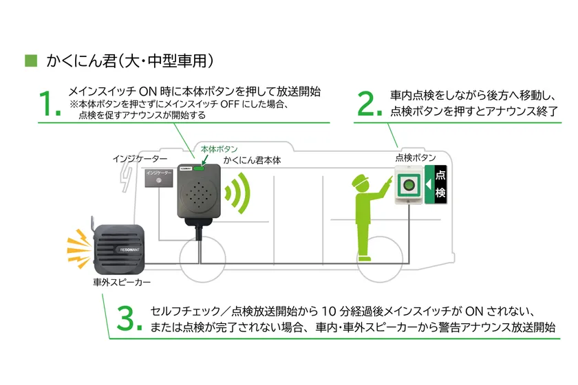 置き去り防止をサポートする『かくにん君』に 大・中型バス向けモデルが新登場!!