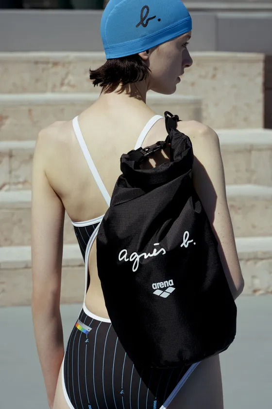 「アニエスベー」のブランド創設者アニエス・トゥルブレは、自身も日常的にスイミングを楽しむスイマーです。同じフランスを発祥とし、革新的でスタイリッシュ、さらに機能性に優れた製品を世に送り出し続ける「アリーナ」をコラボレーションパートナーに、2020年よりスイムウエアやトレーニングウエアを展開しています。
