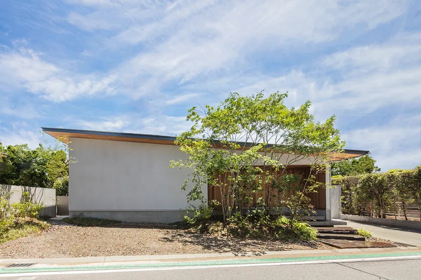 全員が設計士であるネイエの高い設計力を活かし、限られた敷地条件の中で、シンボルとなる大きな庭石を配置した中庭があるなど、四季の移ろいを身近に感じる平屋での暮らしを体感できるモデルハウスを実現しました。また、中庭を囲んで、ショールーム・オフィスが配置されています。