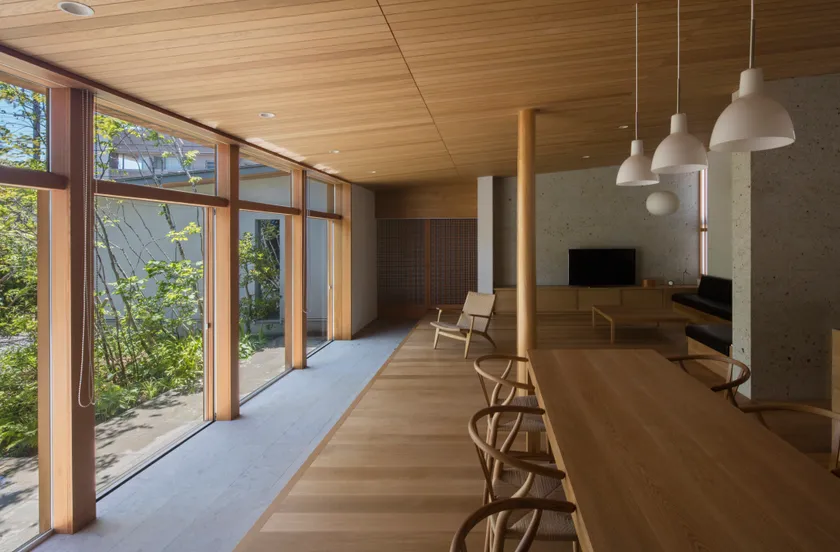 庭とフラットにつながる平屋は、どの部屋からも自然を身近に感じられ、季節の移ろいを常に感じられます。