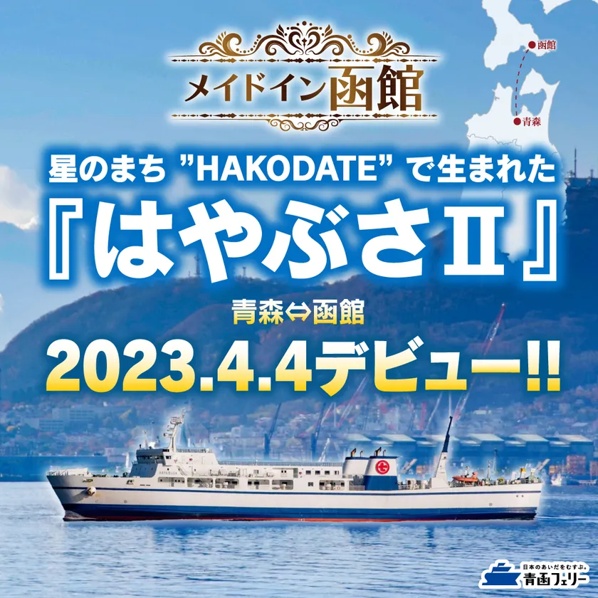 青森~函館を1日16便で結ぶ青函フェリー株式会社(本社:北海道函館市、代表取締役社長:熊坂 高)は、地元函館市の函館どつく株式会社(本社:北海道函館市、代表取締役社長:関川 義紀)で造船の『はやぶさII』を、2023年4月4日(火)函館発14便(20:30)より就航します。『はやぶさII(2,999トン・300名)』は、「あさかぜ5号(1998年就航・1,958トン・103名)」の代替船として建造され、大幅に輸送力がアップとなります。