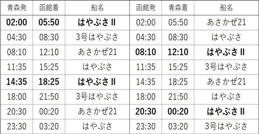 青森発初便:2023年4月5日(水)青森発01便(02:00)→函館着(05:50)