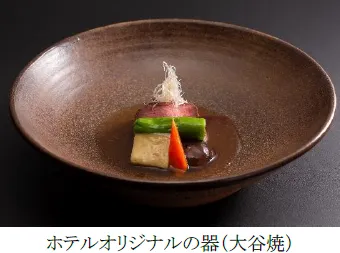 今回の賞味会のために、徳島を代表する歴史ある陶器「大谷焼」の窯元にホテルオリジナルの器を制作していただきました。大谷焼と和洋中調理長の料理とのコラボを愉しんでいただける特別な賞味会です。また、売り上げの一部をNPO法人「徳島こども食堂ネットワーク」へ寄付いたします。