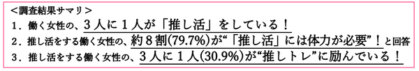 働く女性の “推し活”には体力が必要!? 推し活女性の3人に1人が “推しトレ”に取り組む!