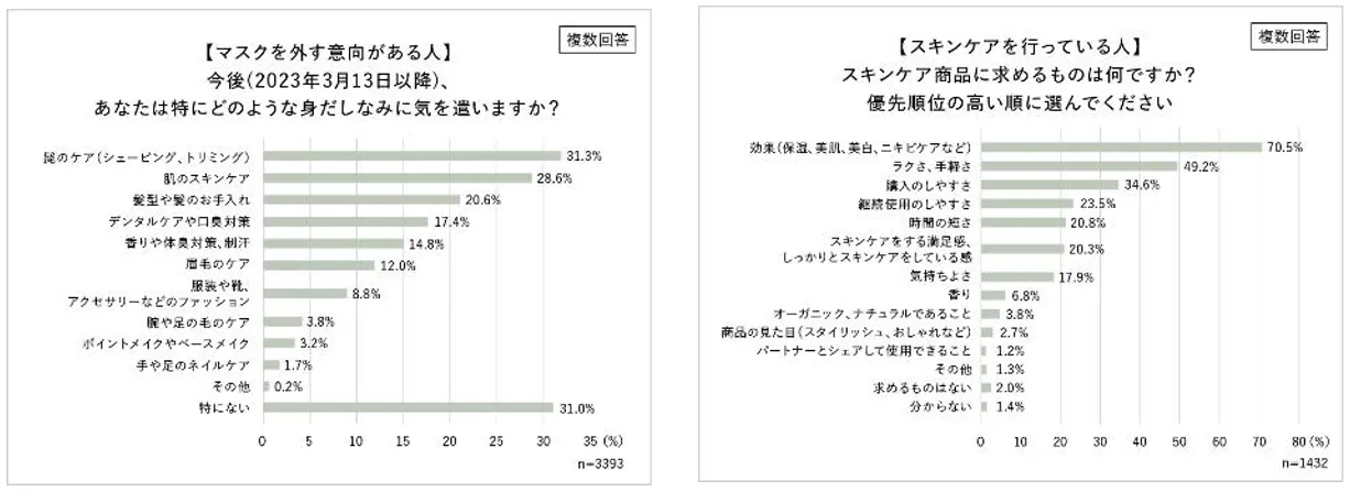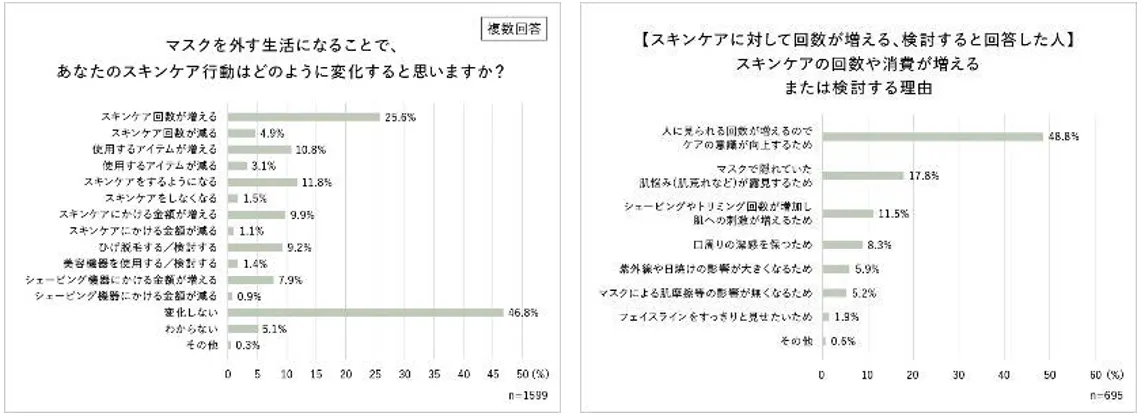 約4割、マスク緩和で「スキンケアの回数や消費が増える、検討する」と回答