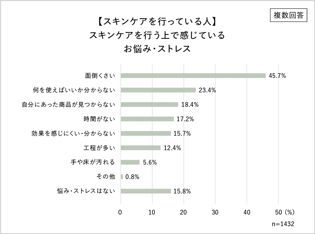3.スキンケアへの悩み・ストレス1位「面倒くさい」2位「何を使えばいいか分からない」