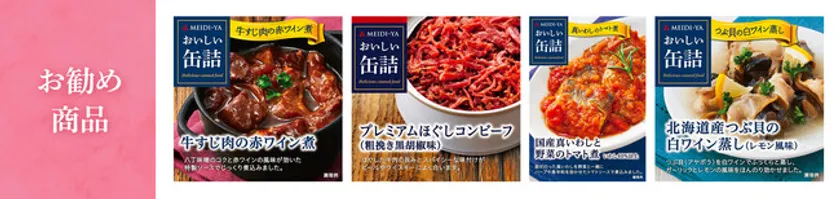 2014年2月に発売した『おいしい缶詰』シリーズは、お酒のおつまみとしても勿論、ご飯のおかずとしてもそのまま使えるため好評を博し、明治屋ストアーおよび全国のスーパーマーケット・コンビニエンスストア等で販売されています。素材と製法にこだわった、ちょっと贅沢な“Ready to Eat(そのまま食べられる)”のグルメ缶詰です。