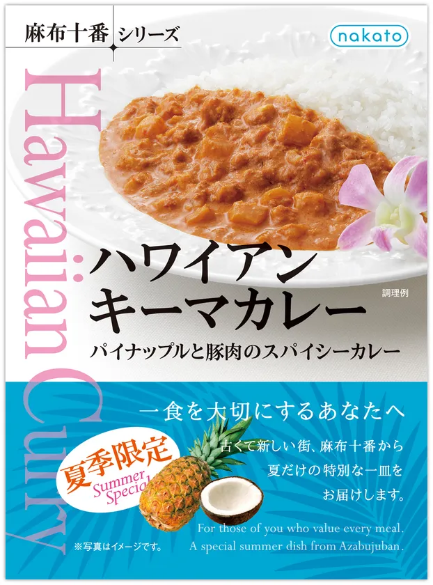 株式会社中島董商店(ナカシマトウショウテン、本社:渋谷区渋谷1-4-13、代表取締役社長:中島 周)は、nakatoブランドで展開する「麻布十番シリーズ」から、『ハワイアンキーマカレー パイナップルと豚肉のスパイシーカレー』と、『瀬戸田産レモンのソース ジュレ仕立て』を、4月7日(金)に夏季限定で発売します。