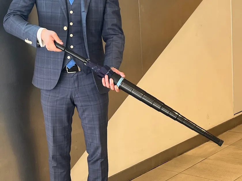 ~もう電車や車で濡れない&濡らさない!夜光るから見失わない!!~ ビヨーンと伸びる傘カバーでビジネスマンの雨の日に革命を!