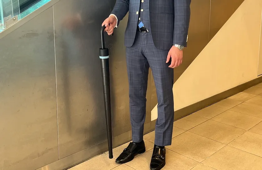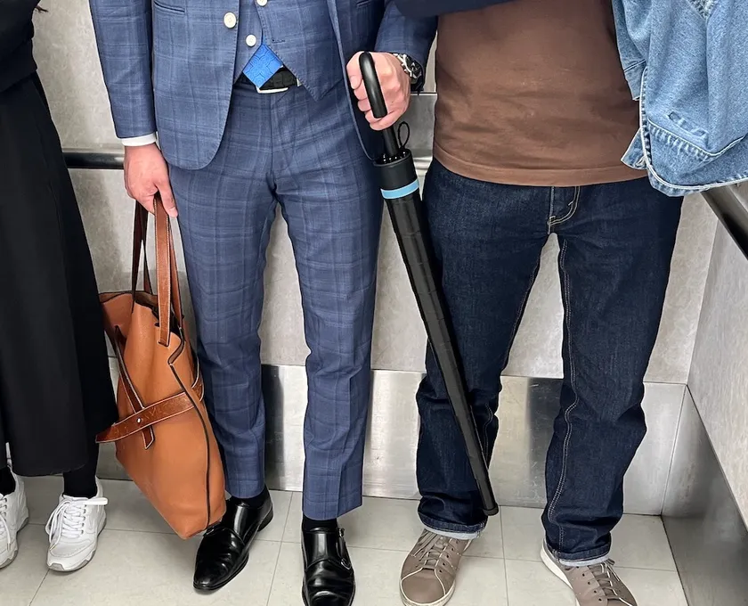 2. 傘を持ちながらスマホを使ってもスーツが濡れない!