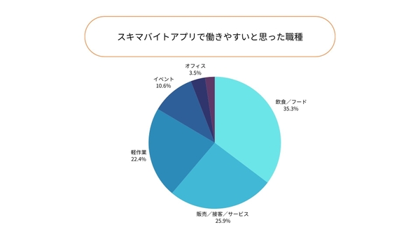 スキマバイトアプリで働きやすいと思った職種は「飲食/フード」が34%。次いで「販売/接客/サービス」が25%。