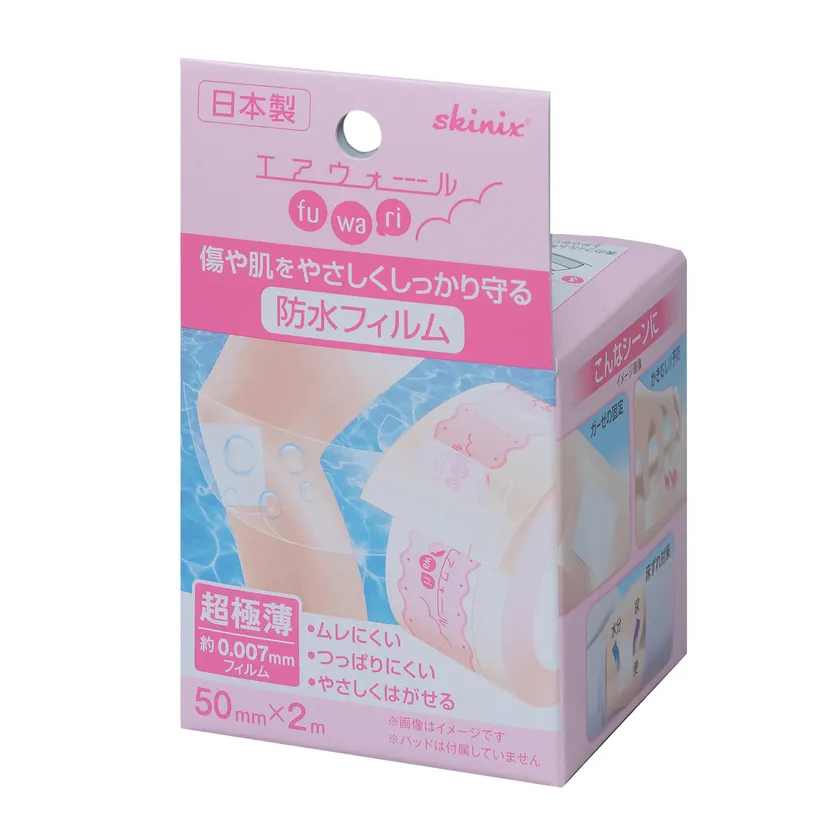 skinix(スキニックス)は、透明・極薄・防水で、水濡れやさまざまなこすれ、刺激などから傷や肌をやさしくしっかり守るロール状フィルムドレッシングの「エアウォールふ・わ・り」の新ラインナップ5cm×2mと10cm×2mをAmazonにて2023年4月3日に発売します。
