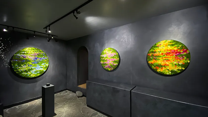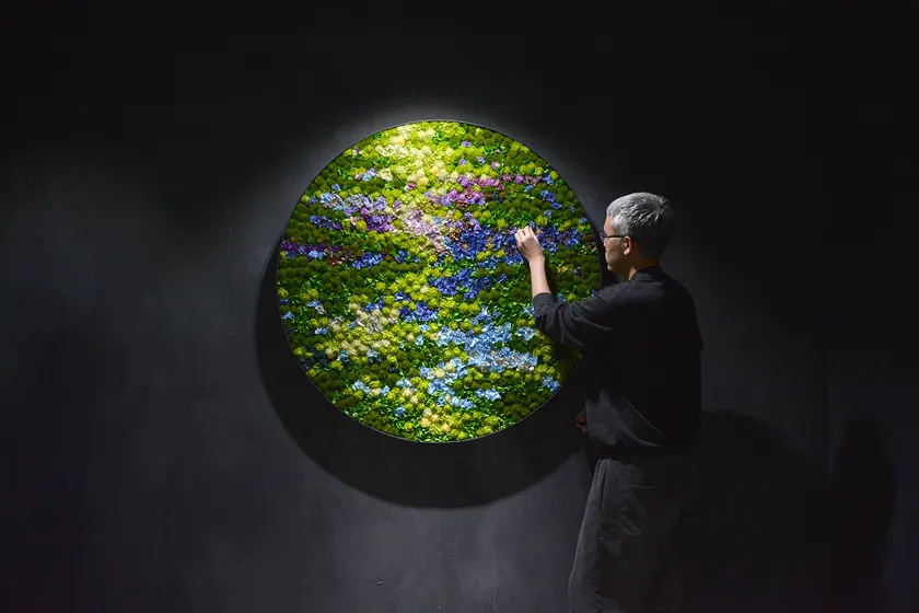 アートフラワーで描かれる恒久的に色褪せぬ景色と、浮遊しながら儚く消える香りのコントラスト。亀井 紀彦が彩る新たな世界観を、ぜひご体感ください。
