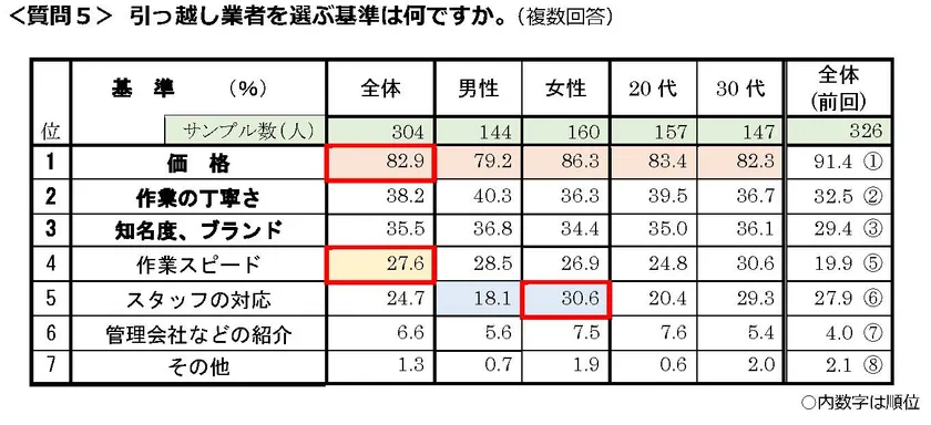 <質問5>引っ越し業者を選ぶ基準は何ですか。