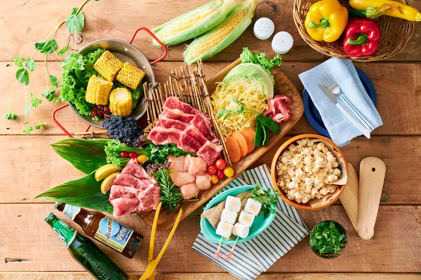『手ぶらでBBQプラン』のほか、アウトドア機材を使った「キャンプ飯」が楽しめる『アウトドア体験プラン』、地下1階 生鮮・グロサリー売場「いちばんち市場」で当日お買上げの食材を持ち込める『BBQ食材持ち込みプラン』の3パターンのご利用方法から、お好きなプランをお選びいただけます。