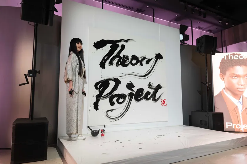イベントでは、書道家 万美氏によるペイントパフォーマンスが行われ、カプセルコレクション名である「Theory Project」を描き会場を盛り上げました。描かれた作品は、セオリー青山店で4月3日(月)まで展示を行ないます。