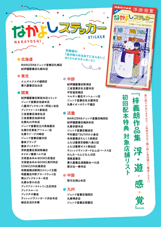 初回特典は「特製なかよしステッカー」。収録話の「虫の知らせはあてにならない」の1コマがステッカーに。