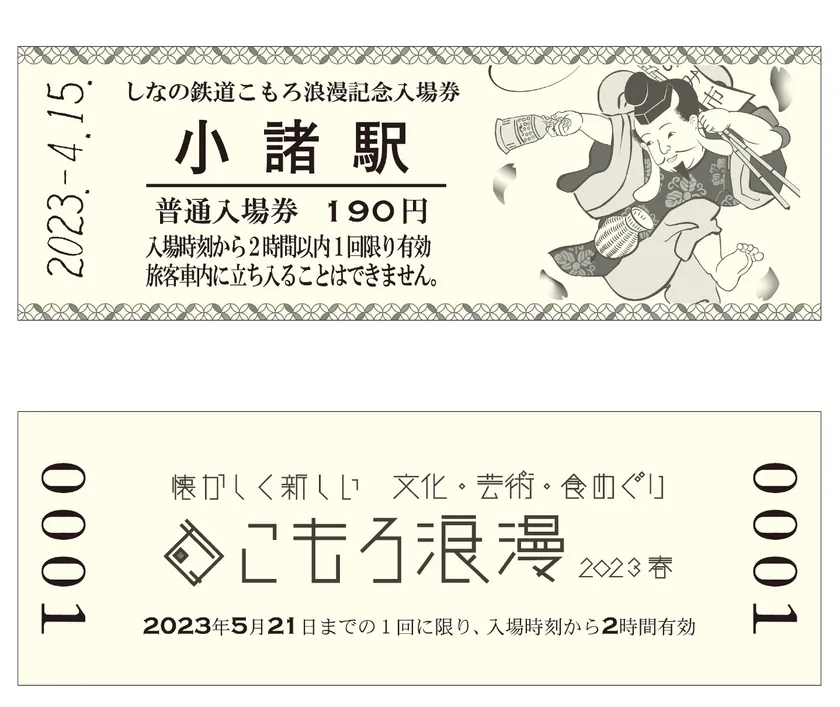 今回はしなの鉄道さんにご協力いただき、「こもろ浪漫2023春開催記念入場券」を発行!こもろ浪漫らしいオリジナルの絵柄で、皆さまのご来場をお待ちしております。