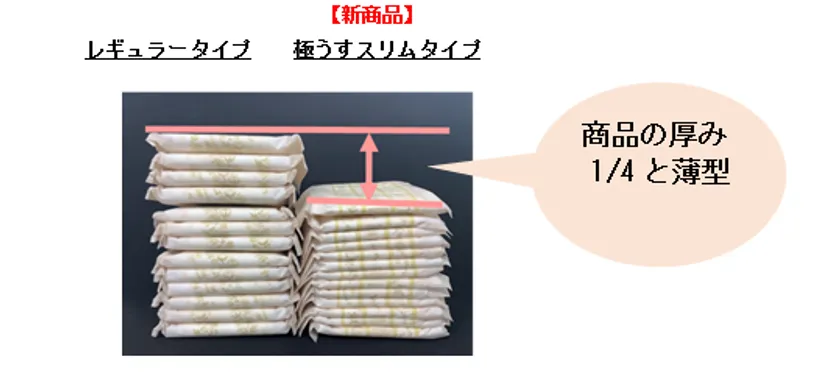 ・『ソフィ はだおもいオーガニックコットン※1』レギュラータイプと比べて約1/4の薄さです。