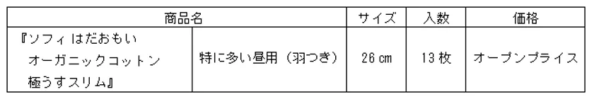 そこでこのたび、肌にやさしいと好評の『ソフィ はだおもいオーガニックコットン※1極うすスリム 特に多い昼用26cm』を、全国で発売します。