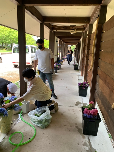 もう一度輝ける場所を!イベント終了後に剪定されたあじさい約500本が、陶芸文化施設射水市陶房「匠の里」を華やかに彩る