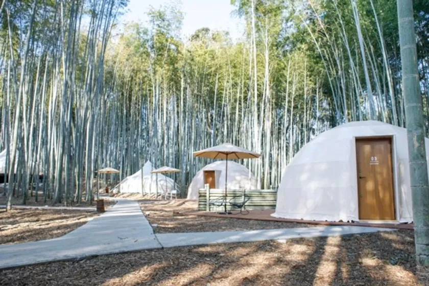 設備やアメニティが充実しているグランピングなら、手軽にアウトドアを楽しめます。静かな竹林の中は、動物の鳴き声や鳥のさえずりが聴こえてくる幻想的な空間です