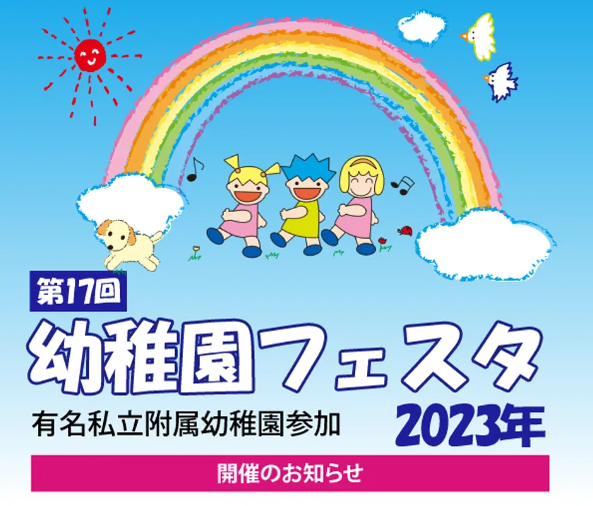 幼稚園・小学校受験、幼児英才教育の富士チャイルドアカデミー(運営:株式会社ひばり、代表取締役:小野田かほり本社:神奈川県鎌倉市)は、有名私立附属幼稚園15園が参加する「幼稚園フェスタ2023」を、二子玉川ライズ スタジオ&ホールにて2023年5月21日(日)に開催いたします。当アカデミーが主催する「幼稚園フェスタ」は、今年で17回目となります。