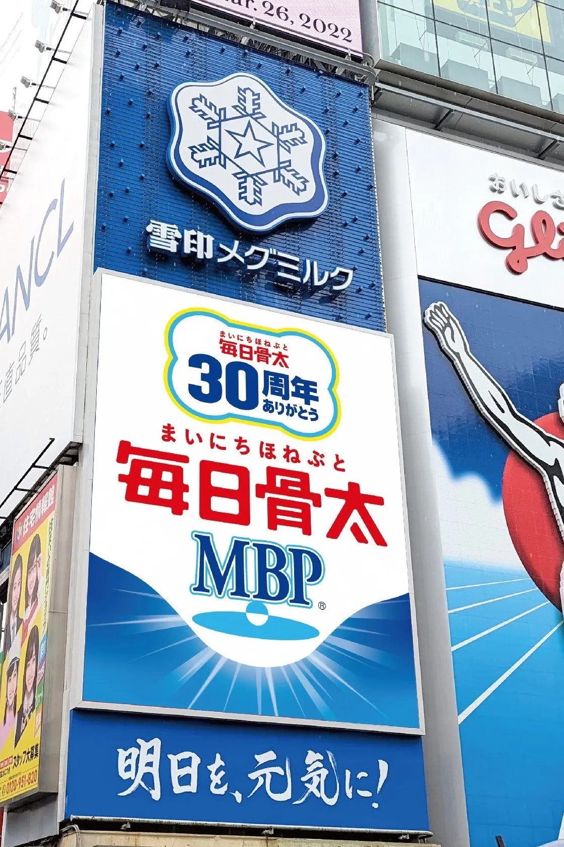 このマークは、4月1日(土)より、大阪 道頓堀の看板にも掲出して、30周年をPRします。