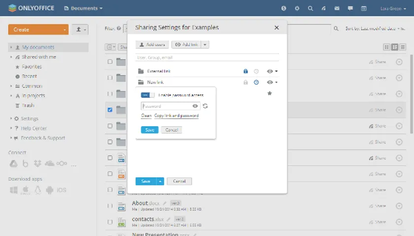 「文書」モジュールには、同じファイルに対して複数の外部共有リンクを生成する機能が搭載されています。また、外部で共有されたドキュメントを保護するために、時間制限やパスワードを設定する新しいオプションが追加されました。