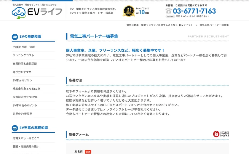 “電気工事パートナー募集”EVライフ| https://ev-life.net/partner/