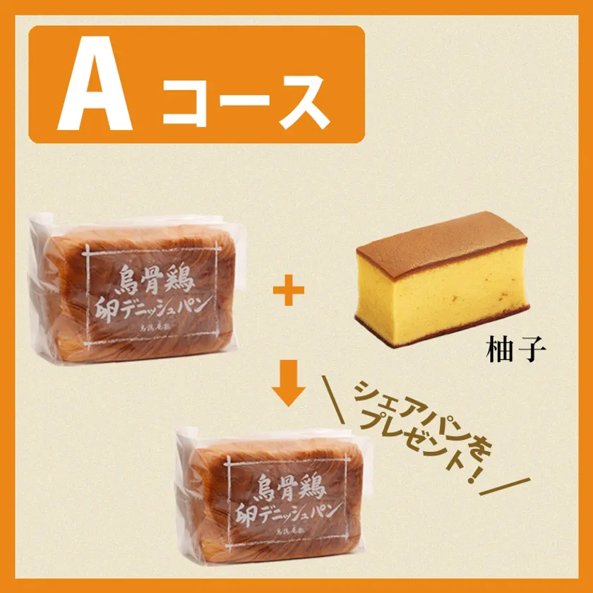 Aコース:烏骨鶏卵デニッシュパン1本+烏骨鶏かすていら2号(柚子)1個