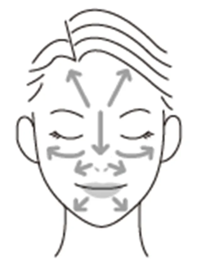 肌をこすらないように頬の広い面から、トントンと軽くたたきこむようになじませます。