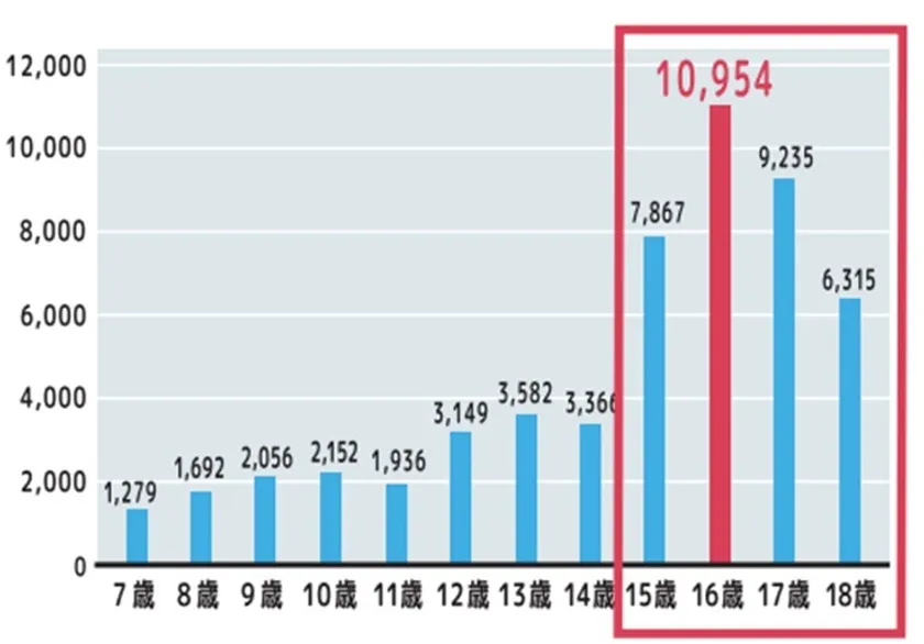 小学生は、自転車が利用できるようになると、行動範囲が広がります。統計からも高学年になるにつれ、自転車事故が増えています。運転技術は徐々に身についてきますが、交通ルールや道路に潜む危険などの理解までは進んでいないことが伺えます。