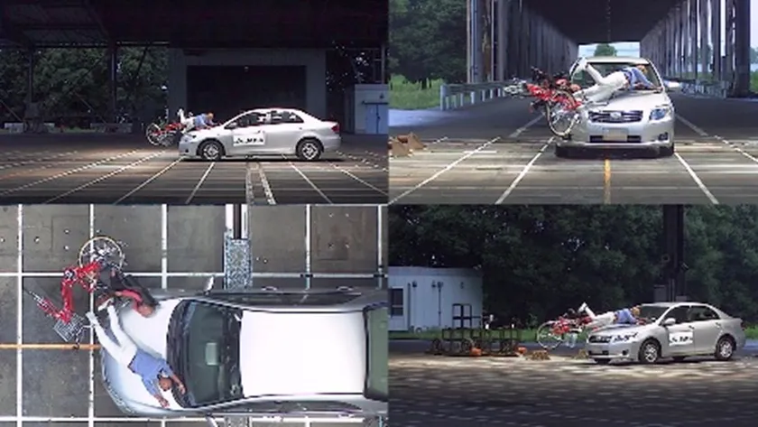 世代別のWEBムービーとあわせ、JA共済連では、自転車乗用時の危険性を学んでいただくため、自動車と衝突した場合の様子や、自転車運転時の転倒などを再現した実験映像も制作しています。