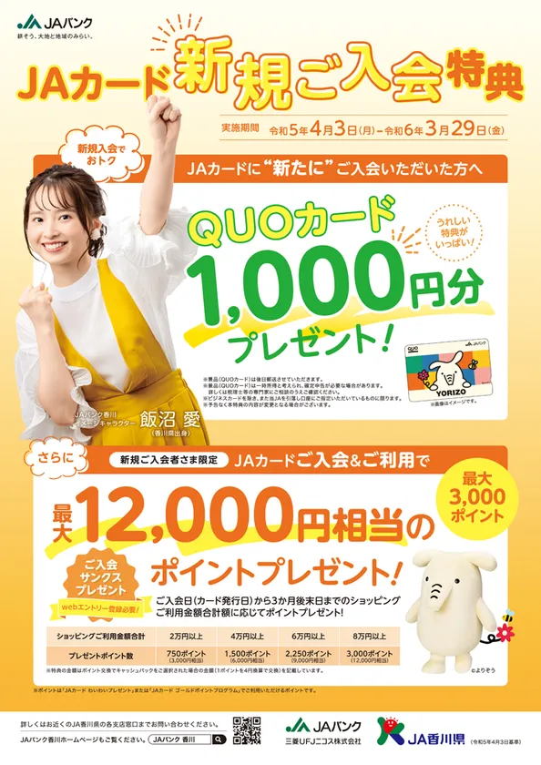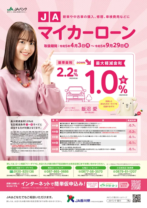 香川県出身女優・飯沼愛がイメージキャラクターを務める JAバンク香川の新プロモーションが4月1日より開始