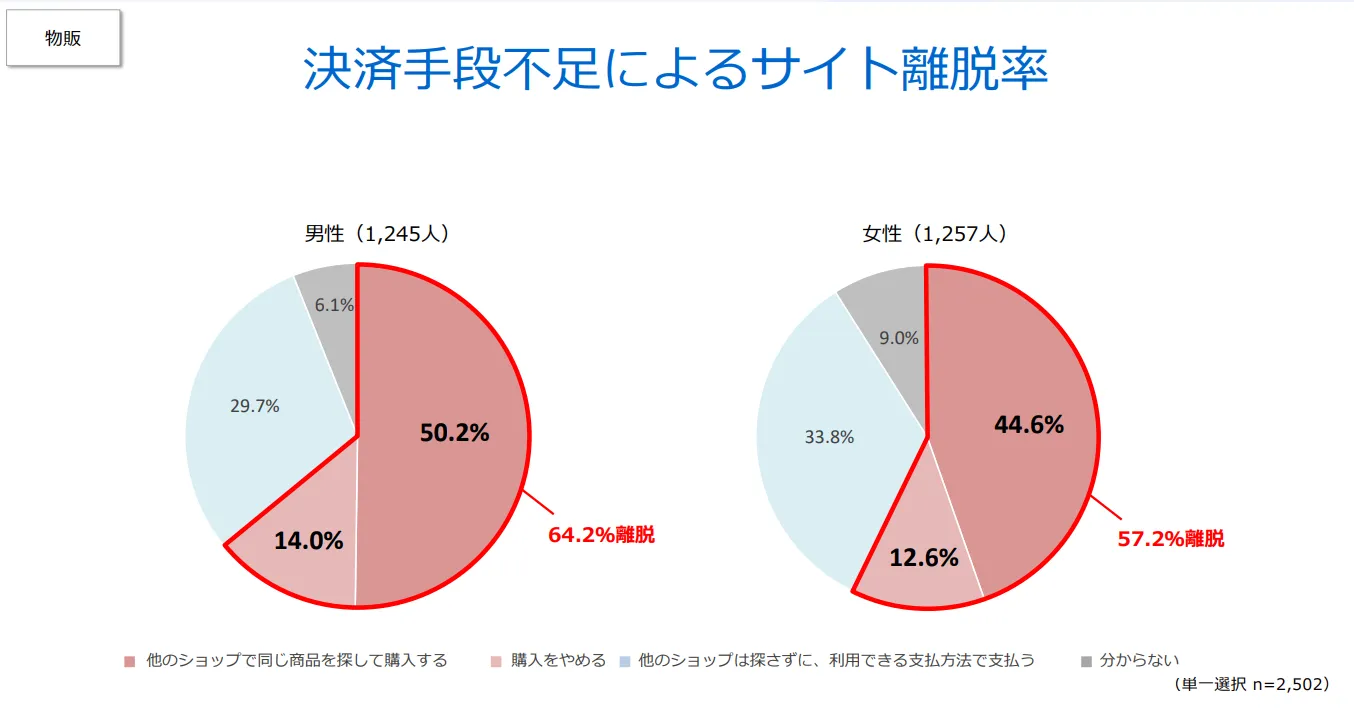 よく利用する決済手段がない場合、53%以上の男女が購入せず離脱する