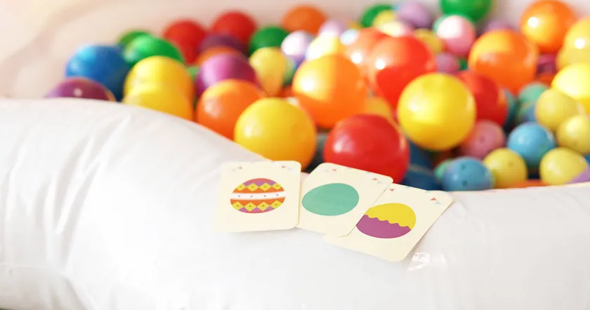 さまざまな色や柄をしたたくさんのエッグから、指定されたエッグと同じ色や柄をしたエッグを探すゲームです。