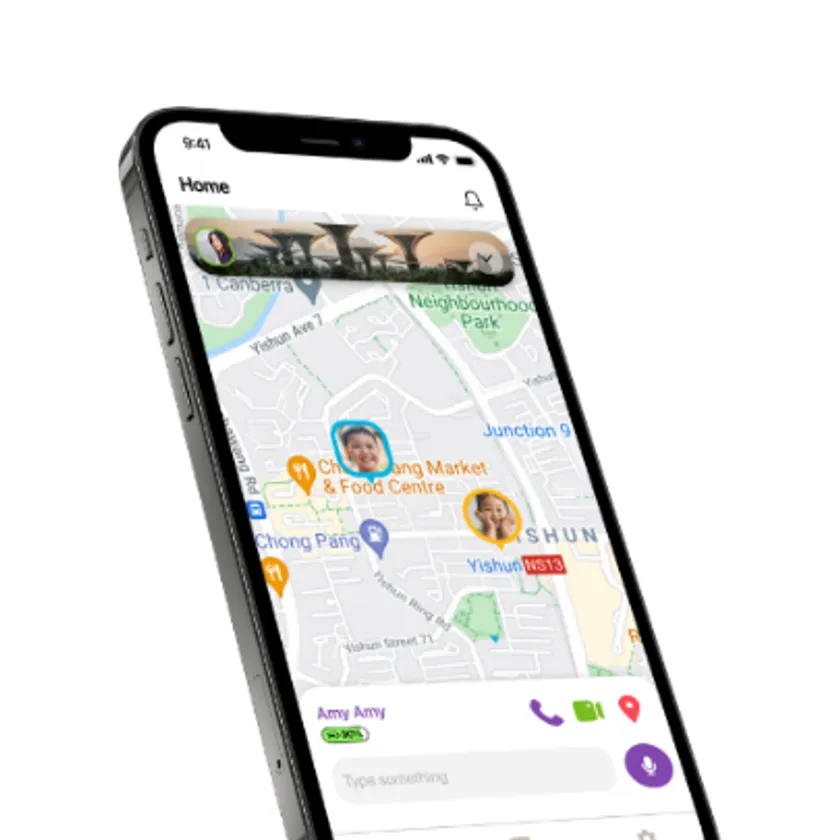 保護者がSNSメンバー承認、投稿確認/IP電話/チャット/位置情報追跡/ SOS時の状況把握/心拍数確認etc