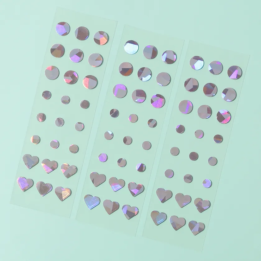 ハイドロコロイド素材にホログラム印刷をしたヴィクトリーパッチは、“貼る顔ピアス”のように美しい輝きを放ちアクセサリー感覚で使用できます。