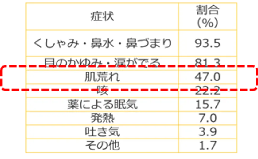“花粉症の症状として、肌荒れ自覚がある方は約半数”