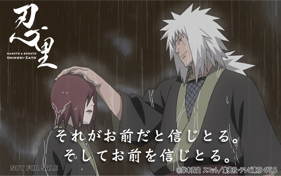 本イベントは、雨の日に入場されたお客様を対象に、雨隠れの里のキャラクターたちのシールを特別配布します。小南、弥彦、長門といった、原作屈指の人気キャラクターが描かれたシールには、それぞれの有名なセリフも書き込まれ、感動のシーンを再現しています。ファンならずとも必見のシールは、雨の日にしか手に入りません!雨の日こそ、忍里へ遊びに行きましょう!