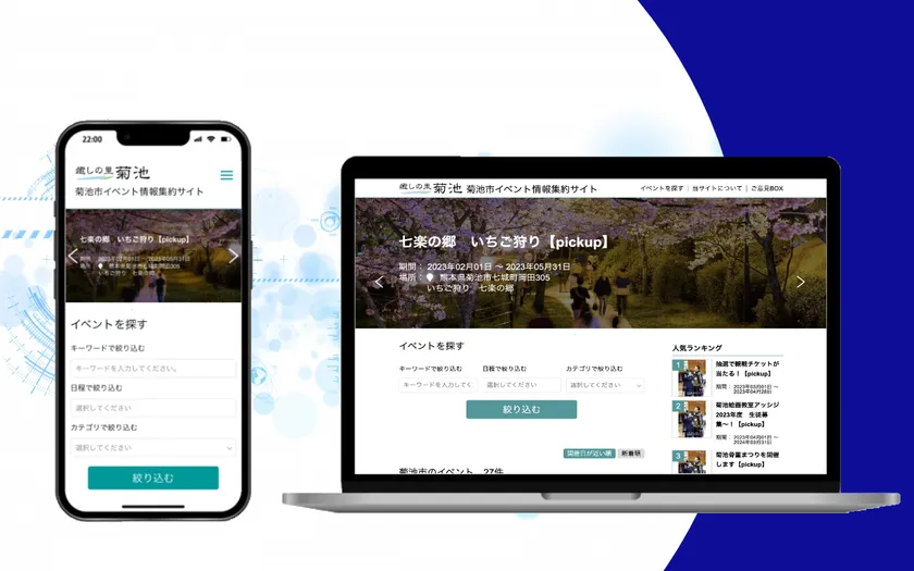 その一環として、市民と観光客への効率的なイベント情報発信を目的に、当社のサービスである「菊池市イベント情報集約サイト」を採用いただきました。
