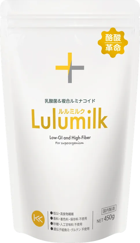 そこで、当社は、各種ルミナコイドの特性に着目し、広範囲に届き、さらに産生される各有機酸の想定される産生比率を考慮した、複数種類のルミナコイドを配合した粉末飲料「Lulumilk(ルルミルク)」を開発しました。