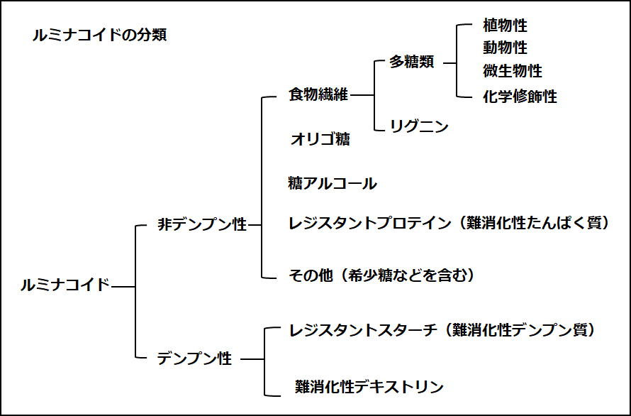 そこで、「ヒトの小腸内で消化吸収されにくく、消化管を介して健康の維持に役に立つ生理作用を発現する食物成分」として、日本食物繊維学会が「ルミナコイド」を提唱しました。ルミナコイドは、食物繊維やオリゴ糖類、糖アルコール、難消化性デキストリン、レジスタントスターチ、レジスタントプロテインなどの難消化性・難吸収性の食物成分の総称で、腸内微生物が短鎖脂肪酸(酪酸、プロピオン酸、酢酸など)を産み出すために欠かせない成分です。