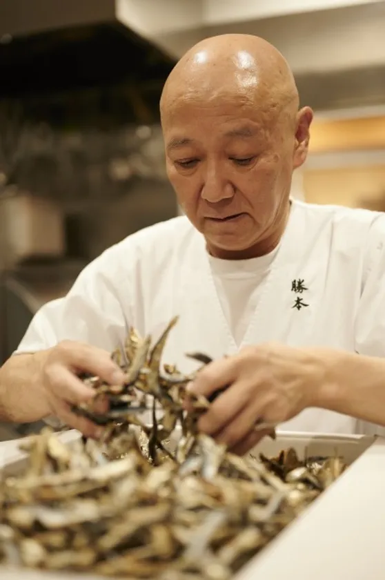 煮干しと向き合う料理長松村