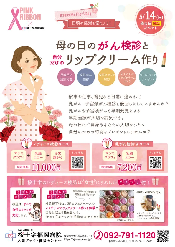 桜十字福岡病院、オリジナルリップクリーム作り体験ができる “母の日限定”のレディースがん検診イベントを開催