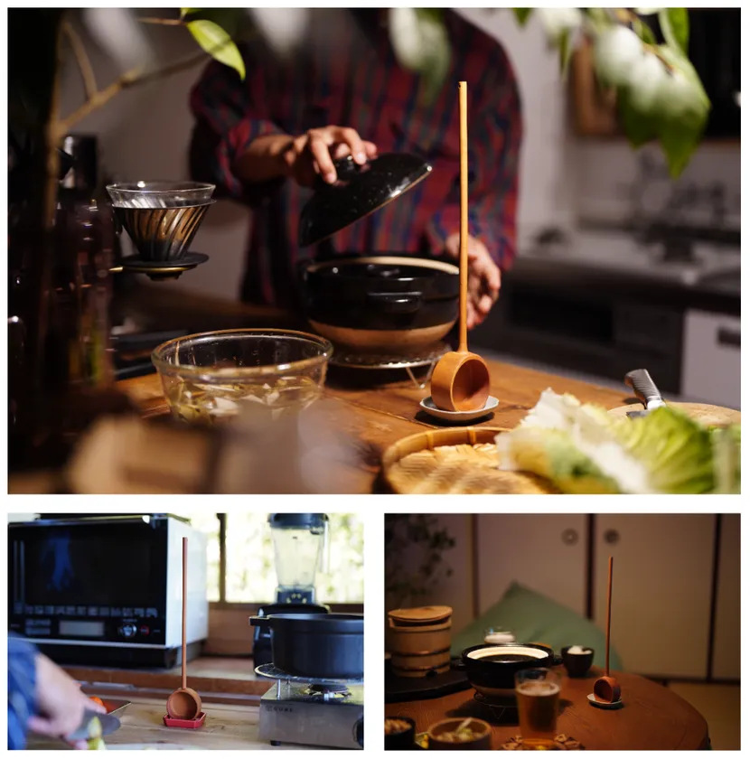 鍋に入ったままのお玉をみて、「料理や食事の間も、美しくみせるお玉があったら」と思い、OTATEを作りました。