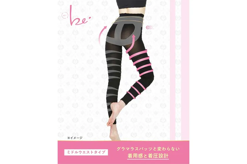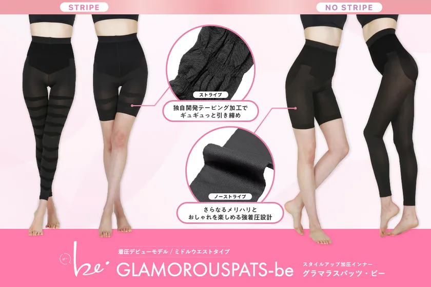 そこで「効率よくコンプレックスやボディラインの悩みを解消したい」というお声に応えるべく、履きやすさを重視し、着圧初心者の方でもはじめやすいよう“ここから美しくなる”という願いを込めた、日々のファッション感覚として楽しめる着圧アイテム『グラマラスパッツ・ビー』を開発。